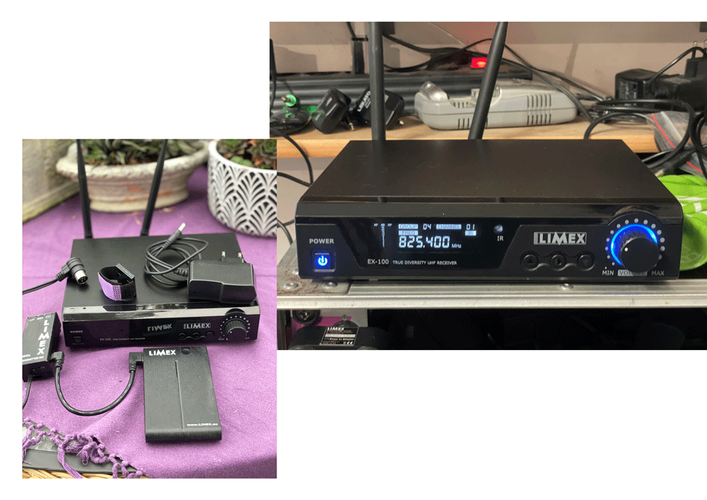 LIMEX Audio Funk V1 mit 823MHz am Sender befindet sich eine Auduobuchse für Kotfhörer, Sender - Empfänger - Akku.